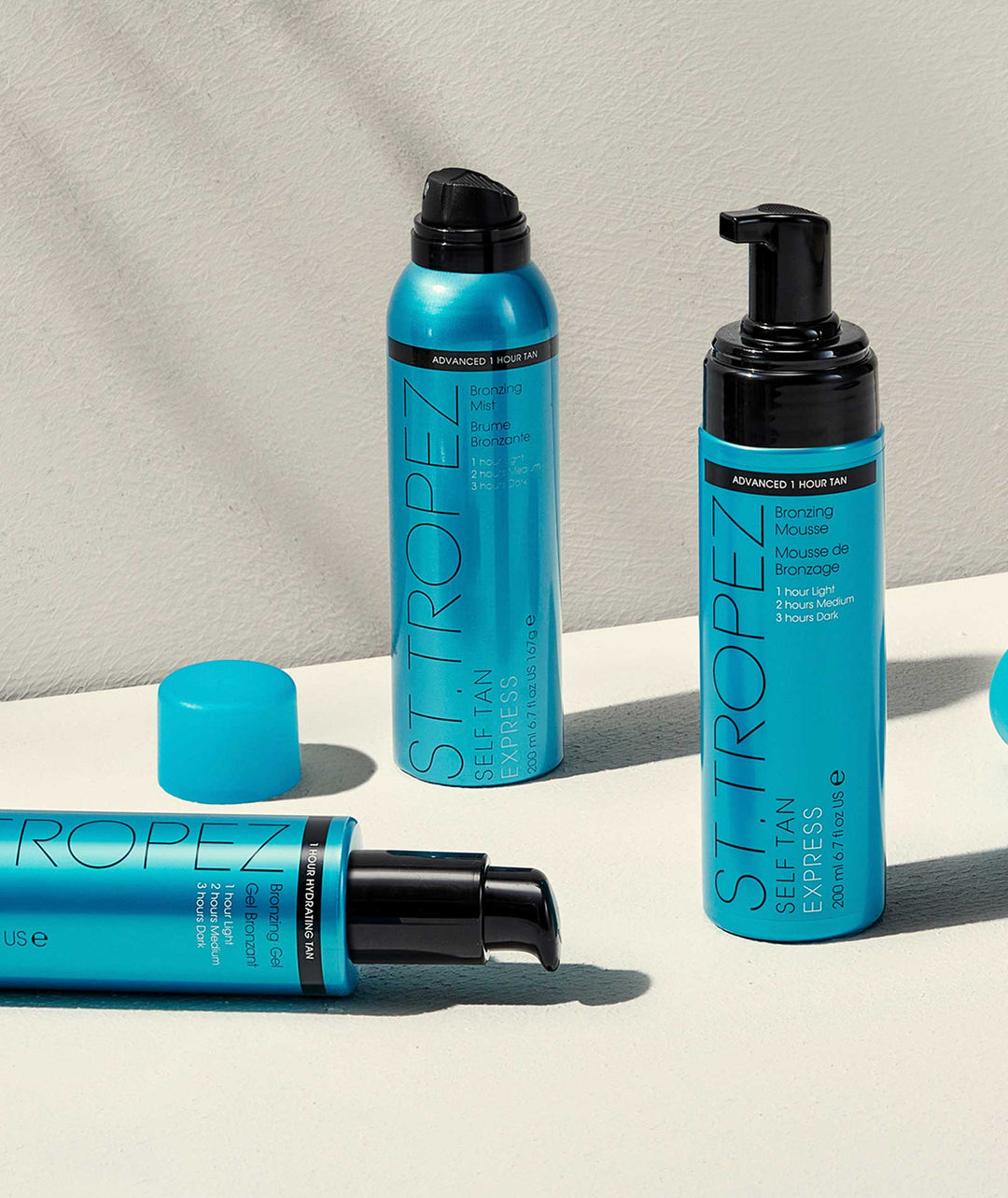 ST. TROPEZ schenkt deiner Haut die Bräune, die du dir wünschst, und das mit der Textur, die am besten zu dir passt. Ob Spray, Creme, Mousse, Schaum oder Öl: Die Selbstbräuner mit angenehm tropischem Duft lassen sich streifenfrei auftragen, punkten mit pflegenden Eigenschaften und sorgen stets für optimale Resultate in maßgeschneiderter Intensität.